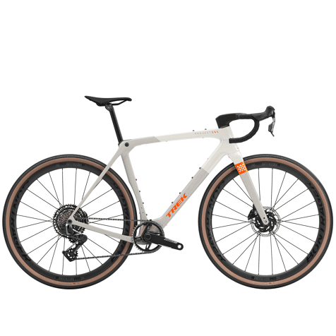 De Checkmate SLR 7 AXS is een carbon gravelracefiets die hard rechtuit wil en stof doet opwaaien op lange, ruige gravelwegen. Om de prestaties te leveren waar jij op wedstrijddagen naar zoekt, combineert de Checkmate een licht aero-ontwerp met IsoSpeed en een nieuwe Gravel Race-geometrie zodat je klaar bent om elke demarrage te volgen zonder dat je energie wordt opgeslokt. De afmontage wordt gecompleteerd door een SRAM Force XPLR AXS E1-aandrijving met draadloos schakelsysteem, carbon wielen en een Trek Aero RSL stuur/stuurpen voor een licht totaalpakket.Je wil je grenzen verleggen tijdens de meest veeleisende gravelraces ter wereld. Je hebt een lichte en aerodynamische fiets nodig, maar dat mag niet ten koste gaan van het rijcomfort. Prestaties zijn belangrijk en daarom kies je voor betrouwbare onderdelen, zoals een SRAM Force XPLR AXS E1 draadloos elektronisch schakelsysteem.Een licht en aerodynamisch 800 Series OCLV Carbon frame met IsoSpeed comforttechnologie en voldoende bevestigingspunten om wedstrijdspullen mee te nemen. Bontrager Aeolus Pro 3V carbon wielen en een Trek Aero RSL carbon stuur/stuurpen die de fiets licht en wendbaar houden. Daarnaast krijg je een SRAM Force XPLR AXS E1 13-speed aandrijving met een draadloos schakelsysteem dat geschikt is voor ruigere wegen.Als je in de toekomst gravelraces wilt gaan rijden, kies dan voor de Checkmate SLR 7 AXS. Deze lichte gravelracer laat je tegenstanders stof happen op eindeloos lange zandwegen en geeft jou onderweg aero-voordelen en comfort. Hij combineert de nieuwe Gravel Race-geometrie met confortgerichte kenmerken zoals trillingdempende IsoSpeed-technologie om je van start tot finish in topvorm te houden.- Je bent op zoek naar een gravelbike waarmee je meteen vanaf de start voluit kunt gaan dankzij de Full System Foil aerobuizen en een aerodynamische, maar toch ergonomische stuur/stuurpen- Het rijcomfort is daarbij niet vergeten dankzij de soepele IsoSpeed-technologie en ruimte voor montage van banden tot een effectieve breedte van 45 mm- De nieuwe Gravel Race-geometrie zorgt voor een diepe zitpositie zodat je minder wind vangt en direct kunt meespringen in een ontsnapping, zonder afbreuk te doen aan het comfort dat je nodig hebt om lange kilometers gravel te kunnen wegtrappen- Een topklasse ultralicht 800 Series OCLV Carbon frame helpt je om energie te besparen door trillingen van het wegdek te absorberen- Hij is uitgerust met ruim voldoende bevestigingspunten om Adventure Bags te monteren en alle noodzakelijke spullen voor een wedstrijddag mee te nemenOnze snelste gravelbike ooitDe nieuwe Full System Foil aerobuizen en de ergonomische aero-stuur/stuurpencombinatie zorgen ervoor dat de Checkmate onze snelste gravelbike tot nu toe is.Onze lichtste gravelbike ooitHoogwaardige onderdelen en 800 Series OCLV Carbon houden het gewicht laag en de snelheid hoog voor topprestaties tijdens wedstrijden.IsoSpeed-comforttechnologieIsoSpeed comforttechniek absorbeert vermoeiende hobbels in het wegdek zodat je langer fris blijft.Ruim voldoende bandenruimteRuimte voor montage van banden met een effectieve breedte van 45 mm om soepel en vloeiend over snelle parkoersen of lastig terrein te vliegen.Optimale opslag voor racespullenDoor de talloze bevestigingspunten kun je Adventure Bags op je frame monteren om onmisbare racespullen te vervoeren, terwijl er ruimte overblijft om voldoende water mee te nemen.Nieuwe Gravel Race-geometrieDeze gloednieuwe geometrie werd specifiek ontworpen voor gravelracen en zorgt voor een diepere, aerodynamische zitpositie zonder dat het ten koste gaat van de wendbaarheid in bochten en controle op afdalingen of ruwe wegen.